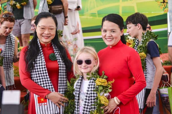 Điểm nhấn của lễ khai mạc là nghi thức chào đón đoàn khách quốc tế đầu tiên năm 2026. Lãnh đạo tỉnh trực tiếp trao hoa, quà lưu niệm, thể hiện sự trân trọng và hình ảnh Vĩnh Long thân thiện, mến khách.